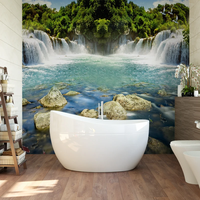 Best Beautiful Scenery Wallpaper Murals Forest Waterfall Landscape Water-proof Wallpaper Adhesive and You will save 0% or US $12.86 today