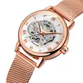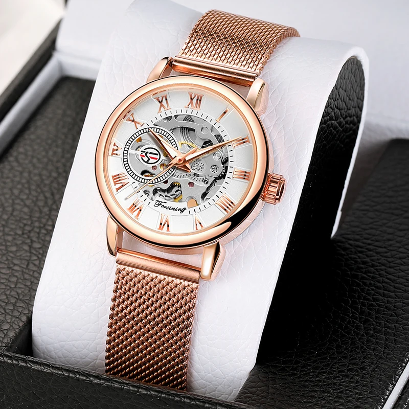 Montre Femme Forsining Women's Watch Rose Gold Stailess Steel Case Skeleton Womens Mechanical Watch Ladies Automatic Wrist Watch