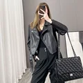 Best savings for Streetwear Short Faux leather jacket Korean Loose With belt Women Spring New High-waist Casual Washed PU Motorcycle Biker Jacket