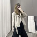 Streetwear Short Faux leather jacket Korean Loose With belt Women Spring New High-waist Casual Washed PU Motorcycle Biker Jacket